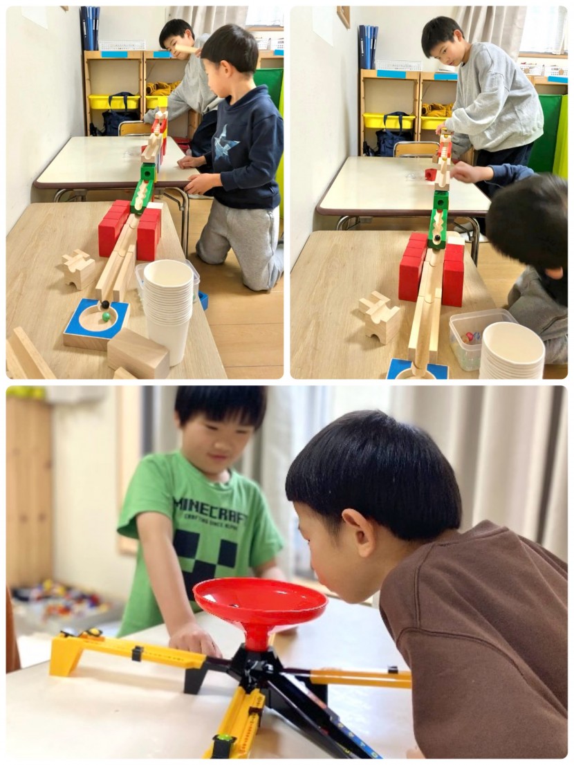 お兄ちゃんが作る玉転がしのコースが魅力的で