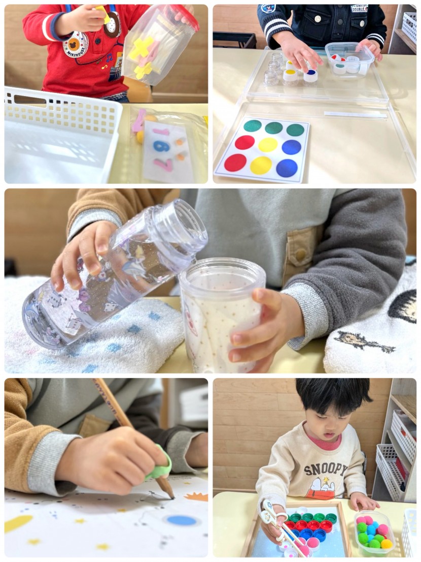 個別クラスでは就園に向けて、ひらがな課題やハサミ課題など